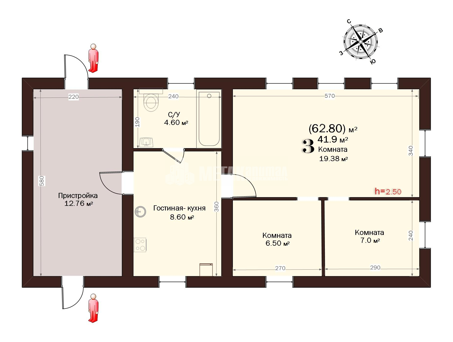 | Комнат в доме | 3 |