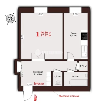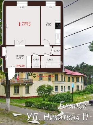 | Площадь, кв.м. | 40.8 |